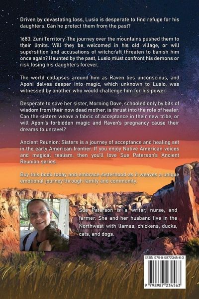 1683. Zuni Territory. Lusio is desperate to find refuge for his daughters. The journey over the mountains pushed them to their limits. Will they be welcomed in his old village, or will superstition and accusations of witchcraft threaten to banish him once again?The world collapses around him as Raven lays unconscious, and Aponi delves deeper into magic, which unknown to Lusio, was witnessed by another who would challenge him for his power. Desperate to save her sister, schooled only by bits of wisdom from her mother, is thrust into the role of the healer. Can the sisters weave a fabric of acceptance in their new tribe, or will Aponi's forbidden magic and Raven's pregnancy cause their dreams to unravel? Ancient Reunion: Sisters is a magical tale of acceptance and healing set in the early American frontier. If you enjoy Native American voices and magical realism, you'll love Book Three of Sue Paterson's Ancient Reunion series.