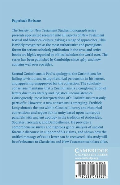 1. An apology for the unity of 2 Corinthians Part I. A Survey of Ancient Forensic Discourse: 2. The anatomy of a genre: sources, nature and features of forensic rhetoric 3. Forensic exigency 4. Forensic invention 5. Forensic disposition 6. Apologetic letters Part II. A Rhetorical Analysis of 2 Corinthians as Ancient Apology: 7. The rhetorical exigency of 2 Corinthians 8. The rhetorical disposition of 2 Corinthians 9. The rhetorical invention of 2 Corinthians 10. The rhetoric of 2 Corinthians and the nature of Paul's theology.