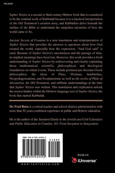 Sepher Yetzira is a second or third century Hebrew book that is considered to be the seminal work of Kabbalah because it is a mystical interpretation of the Old Testament's creation story, and Kabbalists delve beneath the surface of the Bible to understand the unspoken mysteries of how the world came to be. Ancient Secrets of Creation is a new translation and reinterpretation of Sepher Yetzira that provides the answers to questions about how God created the world, especially how the expression, "And God said" is used. Because of Sepher Yetzira's succinctness and the passage of time, its implicit meanings have been lost. However, this work provides a fresh understanding of Sepher Yetzira by rediscovering and clearly explaining those mathematical, scientific, philosophical, and theological foundations on which it rests. These include pertinent pre-Socratic Greek philosophies; the ideas of Plato, Plotinus, Iamblichus, Neopythagoreanism, and Neoplatonism; as well as the works of Philo of Alexandria, the Old Testament, and rabbinic understandings at the time that Sepher Yetzira was written. This translation and explication unlock the secrets hidden within the Hebrew-language text of Sepher Yetzira, the book that started Kabbalah.