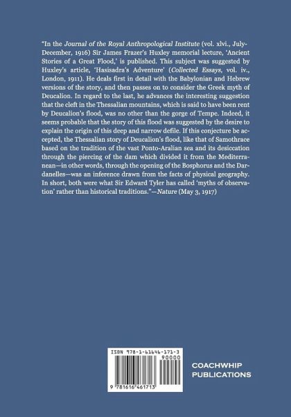 This is a facsimile reprint of Sir James George Frazer's "Ancient Stories of a Great Flood," the Huxley Memorial Lecture for 1916, and published in the Journal of the Royal Anthropological Institute.