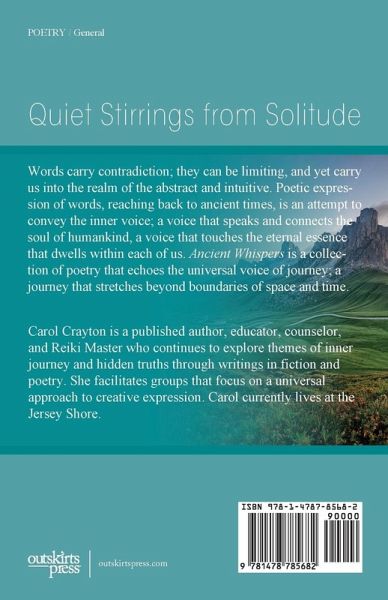Ancient Whispers is a collection of poetry that carries the reader into the intuitive connection of themes centered on inner journey and hidden truths. It echoes the universal voice that is shared in our wanderings through nature, paradox and the metaphysical.