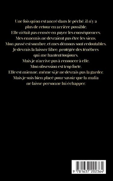 Une fois qu'on est ancré dans le péché, il n'y a plus de retour en arrière possible. Elle n'était pas censée en payer les conséquences. Mes ennemis ne devraient pas être les siens. Mon passé est sombre, et mes démons sont redoutables. Je devrais la laisser libre, protégée des ténèbres qui me hantent toujours. Mais je n'arrive pas à renoncer à elle. Mon obsession est trop forte. Elle est mienne, même si je ne devrais pas la garder. Mais je suis bien placé pour savoir que la mafia ne laisse personne lui échapper.