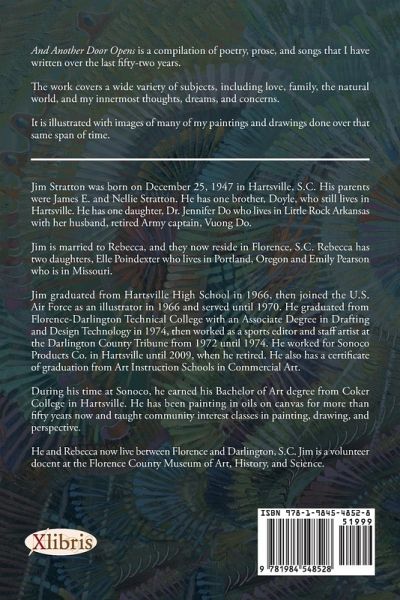 And Another Door Opens is a compilation of poetry, prose, and songs that I have written over the last fifty-two years. The work covers a wide variety of subjects, including love, family, the natural world, and my innermost thoughts, dreams, and concerns. It is illustrated with images of many of my paintings and drawings done over that same span of time.