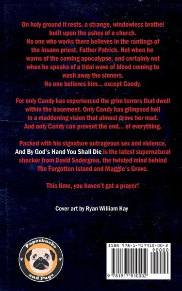 On holy ground it rests, a strange, windowless brothel built upon the ashes of a church. No one who works there believes in the rantings of the insane priest, Father Patrick. Not when he warns of the coming apocalypse, and certainly not when he speaks of a tidal wave of blood coming to wash away the sinners. No one believes him... except Candy. For only Candy has experienced the grim terrors that dwell within the basement. Only Candy has glimpsed hell in a maddening vision that almost drove her mad. And only Candy can prevent the end... of everything. Packed with his signature outrageous sex and violence, And By God's Hand You Shall Die is the latest supernatural shocker from David Sodergren, the twisted mind behind The Forgotten Island and Maggie's Grave. This time, you haven't got a prayer!