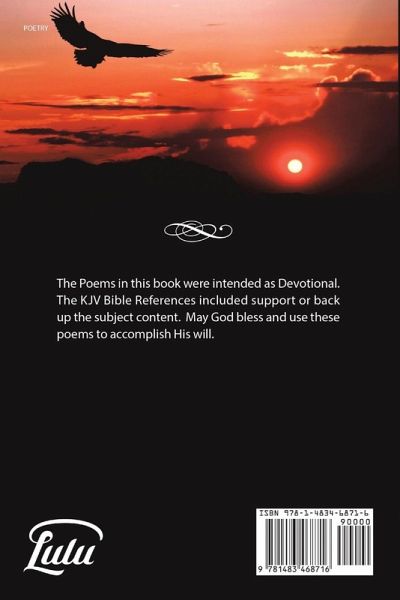 The Poems in this book were intended as Devotional. The KJV Bible References included support or back up the subject content. May God bless and use these poems to accomplish His will.