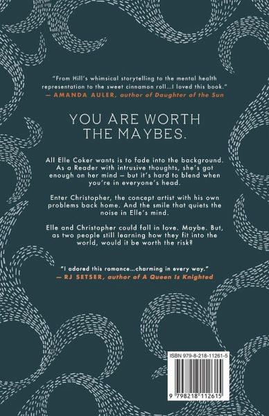 All Elle Coker wants is to fade into the background. As a Reader with intrusive thoughts, she's got enough on her mind - and it's hard to blend when you're in everyone's head. An out-of-state internship offers Elle a chance to escape her small town life and use her Reading as a skill, not a curse. But changing cities doesn't change who you are; the other interns still see Elle as a permanent outsider. Enter Christopher, the concept artist with his own problems back home. And the smile that quiets the noise in Elle's mind. Elle and Christopher could fall in love. Maybe. But, as two people still trying to figure out how they fit into the world, would it be worth the risk?
