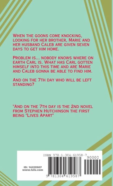 When the goons come knocking,looking for her brother, Marie and her husband Caleb are given seven days to get him home. Problem is... nobody knows where on earth Carl is. What has Carl gotten himself into this time and are Marie and Caleb gonna be able to find him. And on the 7th day who will be left standing? "And on the 7th day is the 2nd novel from Stephen Hutchinson the first being "Lives Apart"