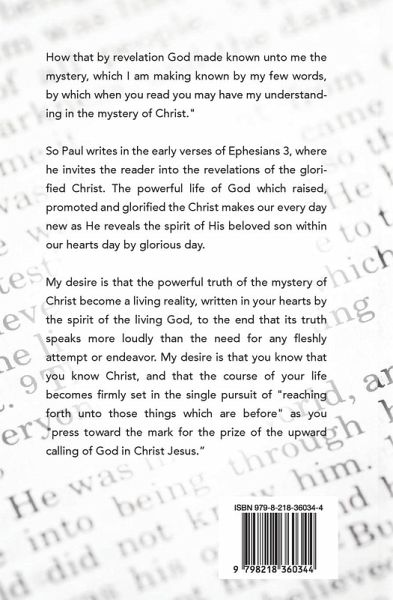 The last in the Give Me Christ trilogy (Give Me Christ and More Christ), this book contains thirty-two studies exploring powerful aspects of the truth of Christ within. The studies can be read randomly or in order and will help the reader come into a whole new way of approaching the Bible, which will help release powerful spiritual understanding. For those seeking a closer, more meaningful and powerful relationship with the heavenly Father, these studies will inspire, guide and empower the reader to come into his/her spiritual inheritance, free from the bondage of religion and worldly conformity.