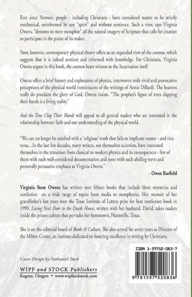 Ever since Newton, people - including Christians - have considered matter to be strictly mechanical, uninformed by any ""spirit"" and without sentience. Such a view, says Virginia Owens, ""demotes to mere metaphor"" all the natural imagery of Scripture that calls for creation to participate in the praise of its maker. Now, however, contemporary physical theory offers us an expanded view of the cosmos, which suggests that it is indeed sentient and informed with knowledge. For Christians, Virginia Owens argues in this book, the cosmos bears witness to the Incarnation itself. Owens offers a brief history and exploration of physics, interwoven with vivid and provocative perceptions of the physical world (reminiscent of the writings of Annie Dillard). The heavens really do proclaim the glory of God, Owens insists. ""The prophet's figure of trees clapping their hands is a living reality."" ""And the Trees Clap Their Hands"" will appeal to all general readers who are interested in the relationship between faith and our understanding of the physical world.