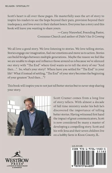 Scott's heart is all over these pages. He masterfully uses the art of story to inspire his readers to see the hope beyond their pain, provision beyond their inadequacy, and love even in their darkest hours. Everyone has a story and this book will leave you wanting to share yours. -Carey Nieuwhof, Founding Pastor, Connexus Church and author of Didn't See It Coming We all love a good story. We love listening to stories. We love telling stories. Stories engage our imagination, fuel our emotions and move us to action. Stories can build bridges between multiple generations. Maybe the reason we feel like we are unable to shape and influence those around us is because we've silenced our story with "The End" where God wants us to tell the story of our "And then...". So, what's your story? Where have you settled for "The End" in your life? What if instead of settling, "The End" of your story becomes the beginning of your greatest "And then..."? This book will inspire you to not just tell better stories but to never stop sharing your story.