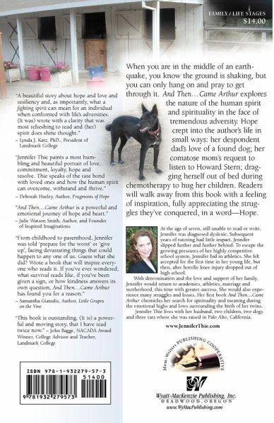 When you are in the middle of an earthquake, you know the ground is shaking, but you can only hang on and pray to get through it. "And Then. Came Arthur" explores the nature of the human spirit and spirituality in the face of tremendous adversity. Hope crept into the author's life in small ways: her despondent dad's love of a found dog; her comatose mom's request to listen to Howard Stern; dragging herself out of bed during chemotherapy to hug her children. Readers will walk away from this book with a feeling of inspiration, fully appreciating the struggles they've conquered, in a word - Hope.
