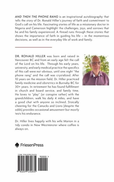 AND THEN THE PHONE RANG is an inspirational autobiography that tells the story of Dr. Ronald Hiller's journey of faith and commitment to God's call on his life. Fascinating stories of life as a missionary doctor in Nigeria and Cameroon highlight the challenges, joys, and sorrows that he and his family experienced. A thread runs through these stories that shows the importance of faith in guiding his life - in the momentous decisions, as well as in the everyday life of work and family.