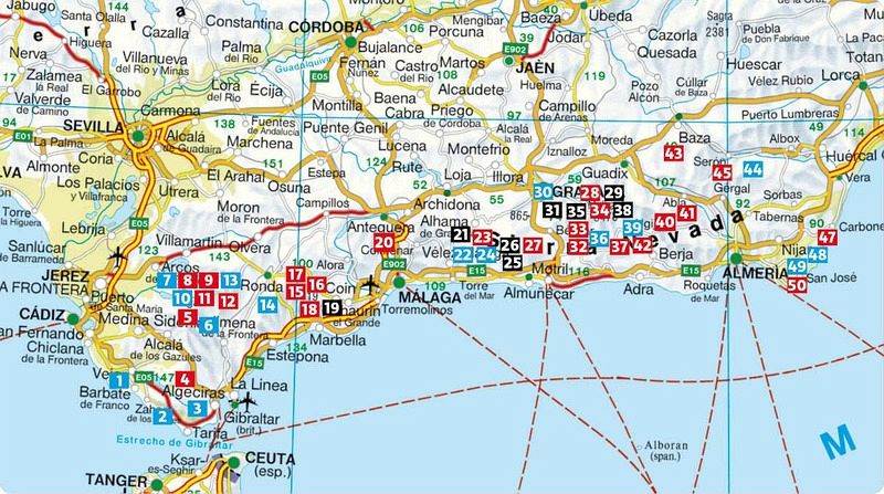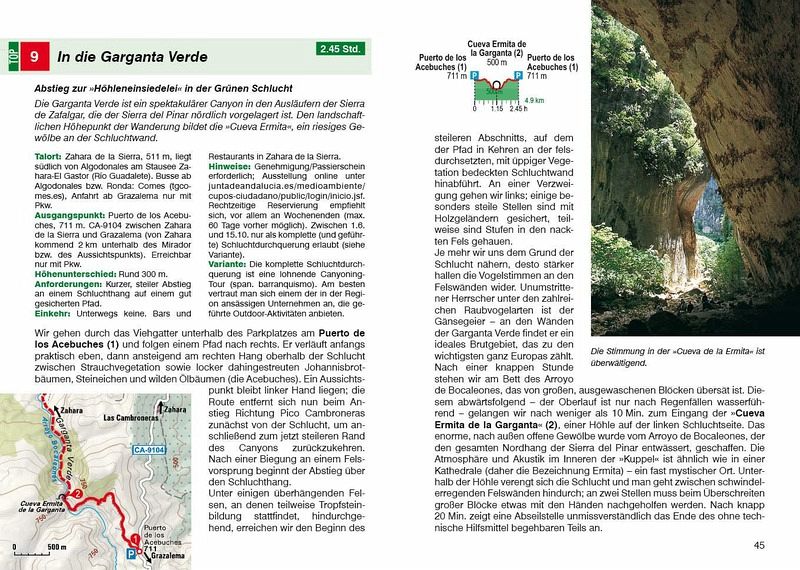 Die sorgfältig ausgewählten Touren führen durch versteckte Schluchten, über luftige Grate und entlang malerischer Küstenabschnitte. Von einfachen Strandspaziergängen bis zu anspruchsvollen Gipfelbesteigungen bietet dieser Wanderführer für jeden Geschmack das Richtige. Alte Maultierpfade werden erkundet, den Spuren von Schmugglern und Bandoleros gefolgt, es geht vorbei an weiß getünchten Bergdörfern und zu abgelegenen Cortijos. Besonders verlockend sind die Wanderungen an der Küste, bei denen zahlreiche Bade-Pausen möglich sind. Die üppigen mediterrane Wälder im Hinterland von Costa del Sol und Costa de la Luz bieten zudem wunderbare Wandermöglichkeiten. Hoch hinaus geht es auf die schneebedeckten Gipfel der Sierra Nevada - manche davon über 3000 Meter- ,die mit den von der Sonne versengten Trockensteppen kontrastieren.
