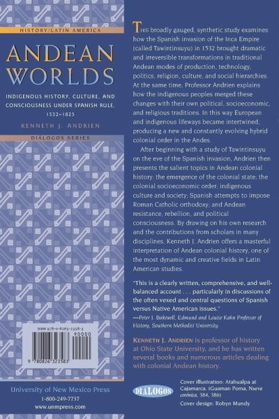 This broadly gauged, synthetic study examines how the Spanish invasion of the Inca Empire (called Tawintinsuyu) in 1532 brought dramatic and irreversible transformations in traditional Andean modes of production, technology, politics, religion, culture, and social hierarchies. At the same time, Professor Andrien explains how the indigenous peoples merged these changes with their own political, socioeconomic, and religious traditions. In this way European and indigenous life ways became intertwined, producing a new and constantly evolving hybrid colonial order in the Andes. After beginning with a study of Tawintinsuyu on the eve of the Spanish invasion, Andrien then presents the salient topics in Andean colonial history: the emergence of the colonial state; the colonial socioeconomic order; indigenous culture and society; Spanish attempts to impose Roman Catholic orthodoxy; and Andean resistance, rebellion, and political consciousness. By drawing on his own research and the contributions from scholars in many disciplines, Kenneth J. Andrien offers a masterful interpretation of Andean colonial history, one of the most dynamic and creative fields in Latin American studies.