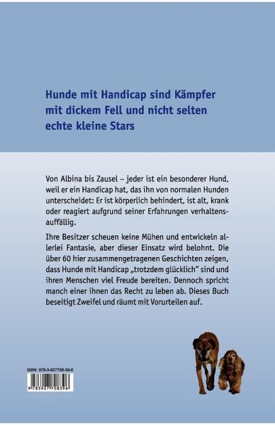 Von Albina bis Zausel - jeder ist ein besonderer Hund, weil er ein Handicap hat, das ihn von normalen Hunden unterscheidet: Er ist körperlich behindert, alt, krank oder reagiert aufgrund seiner Erfahrungen verhaltensauffällig. Ihre Besitzer scheuen keine Mühen und entwickeln allerlei Fantasie, aber dieser Einsatz wird belohnt. Die über 60 hier zusammengetragenen Geschichten zeigen, dass Hunde mit Handicap "trotzdem glücklich" sind und ihren Menschen viel Freude bereiten. Dennoch spricht manch einer ihnen das Recht zu leben ab. Dieses Buch beseitigt Zweifel und räumt mit Vorurteilen auf. Hunde mit Handicap sind Kämpfer mit dickem Fell und nicht selten echte kleine Stars.