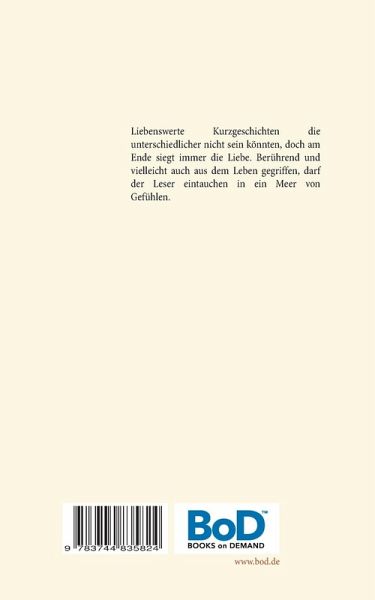 Liebenswerte Kurzgeschichten die unterschiedlicher nicht sein könnten, doch am Ende siegt immer die Liebe. Berührend und vielleicht auch aus dem Leben gegriffen, darf der Leser eintauchen in ein Meer von Gefühlen.