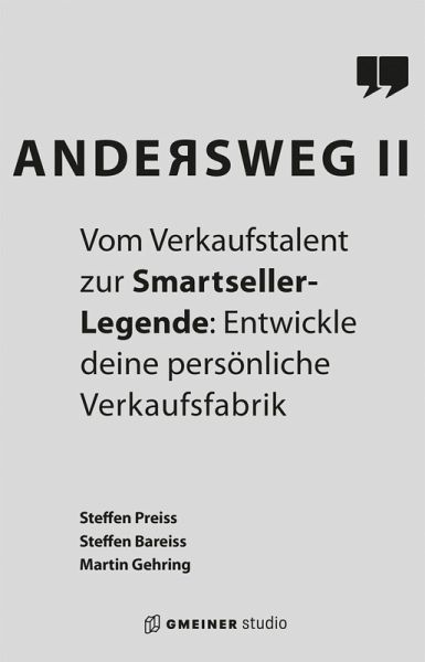 Die spannende Tour de Force geht weiter: Der ANDERSWEG zum ERFOLG macht Smartseller und Smartsellerinnen fit dafür, beim Verkaufen simply outstanding zu sein. Bringe Dein Potential als Smartseller auf dem großen Spielfeld des Verkaufs zum Leuchten! Als Begleiter auf dem Andersweg zum Erfolg stellen sich zur Seite: erneut eine ganze Menge Fakten, Learnings und Impulse, die in die Tiefe gehen; Guru Gee, noch immer das Verkaufsgenie; der Holi Pastor und Doktor Unique aus der Loge der Smartseller; Mats, der die Verkaufswelt im Sturm erobern möchte; Henry, der jetzt so richtig durchstarten will - und natürlich Du selbst: Smartseller Progressive, mit den nächsten Schritten als kommender Shootingstar...Das zweite Buch der Reihe »Der Andersweg zum Erfolg« taucht kreativ und fundiert noch tiefer in die Welt des Smartselling ein und zeigt dabei, wie Verkaufstalente legendäre Verkaufserfolge möglich machen. Dabei werden die Geheimnisse einer erfolgreichen Verkaufsfabrik ebenso entschlüsseltwie die Grundlagen einer überzeugenden Kommunikation im Verkauf, und den Erfolgsboostern einer fesselnden Ich-Marke und des Bestselling mit Charisma wird auf den Grund gegangen. Wer als motivierter Smartseller seine erweiterten Möglichkeiten auf dem Andersweg zum Erfolg konsequent zu verstehen und zu nutzen lernt, kann damit sein Potential als wahrer Bestseller leben!