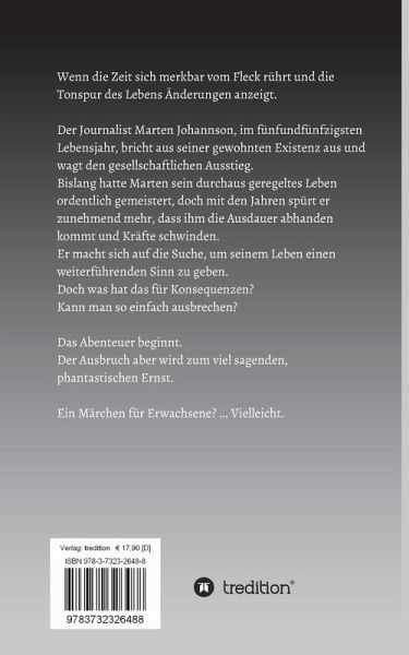 Der Journalist Marten Johannson, im fünfundfünfzigsten Lebensjahr, bricht aus seiner gewohnten Existenz aus und wagt den gesellschaftlichen Ausstieg.