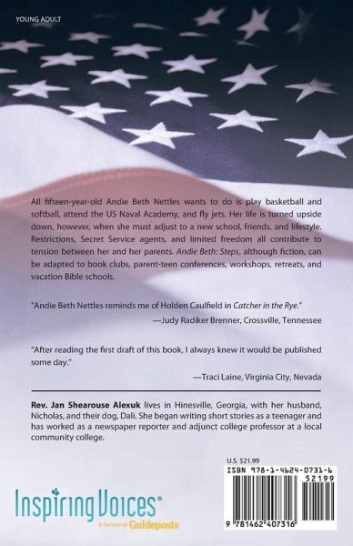 All fifteen-year-old Andie Beth Nettles wants to do is play basketball and softball, attend the US Naval Academy, and fly jets. Her life is turned upside down, however, when she must adjust to a new school, friends, and lifestyle. Restrictions, Secret Service agents, and limited freedom all contribute to tension between her and her parents. Andie Beth: Steps, although fiction, can be adapted to book clubs, parent-teen conferences, workshops, retreats, and vacation Bible schools. "Andie Beth Nettles reminds me of Holden Caulfield in Catcher in the Rye." -Judy Radiker Brenner, Crossville, Tennessee "After reading the first draft of this book, I always knew it would be published some day." -Traci Laine, Virginia City, Nevada