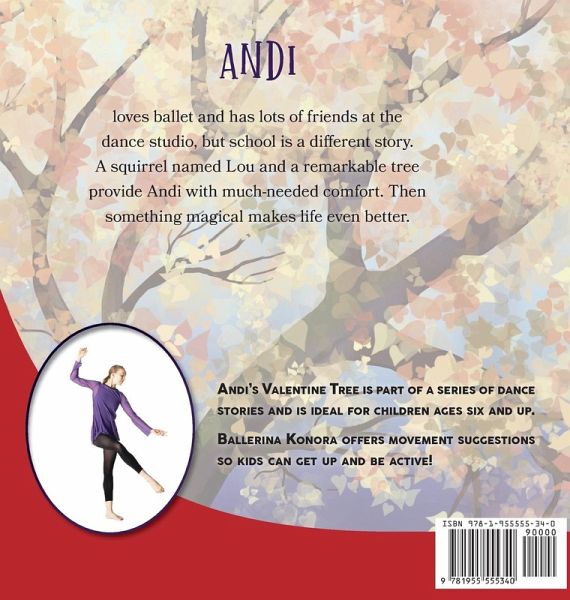 Andi loves ballet and friends at the studio, but school is a different story. A squirrel named Lou and a remarkable tree provide much-needed comfort. Then something magical makes life even better. A touching story celebrating the beauty of nature, embracing one's own passions, and forgiveness. Ballerina Konora joins the pages with dance photos and suggestions for movement exploration. Three books in one: readers can enjoy the story, act out the tale in their own way, or try Konora's suggested activities, designed by an award-winning ballet teacher to develop body awareness and movement knowledge. Each Dance-It-Out! story is a kids' dance performance for the imagination stage. Andi's Valentine Tree builds on previous Dance-It-Out! material and is ideal for ages 6+, dance students, or as a sequel to other stories.