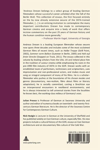 Andreas Dresen is a leading European filmmaker whose oeuvre now spans three decades and includes some of the most acclaimed German films of recent times, such as Halbe Treppe (Grill Point, 2002), Sommer vorm Balkon (Summer in Berlin, 2005) and Halt auf freier Strecke (Stopped on Track, 2011). The essays collected in this volume by leading scholars from the USA, UK and Ireland place him in the tradition of auteur cinema while emphasising his roots in the pre-1990 film industry of DEFA in the GDR. Dresen works with an established team of performers, technicians and scriptwriters, uses improvisation and non-professional actors, and makes music and song an integral component of many of his films. He is a scholar-filmmaker who pushes at the boundaries of his chosen modes and genres (documentary, neo-realism, films about films or literary adaptation); he is socially committed, casting a Brechtian eye on interpersonal encounters in neoliberal environments; and he is always interested to tell universal stories from the localities he knows best, the working-class milieus of Germany's east.