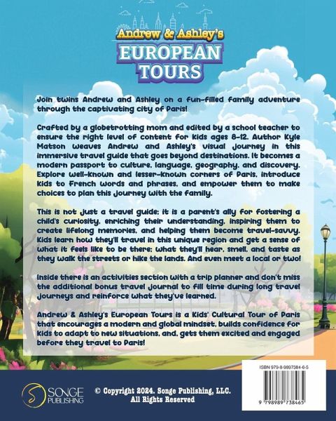 The ultimate visual-learning and age-appropriate family travel guide for kids visiting culturally rich destinations, it's fun and informative at the same time with a little family adventure tossed in. It holds a child's interest and nurtures that sense of curiosity while reinforcing lessons learned at school in geography and history. Kids are encouraged to participate in pre-trip planning with useful activities to reinforce learning during the trip and sharing memories upon their return. This book unveils destinations with immersive imagery to introduce real travel experiences, blending education with entertainment. Combines travel, language learning, fun facts, and activities Engages kids creatively and intellectually Exposes kids to cultural awareness Explains geographical context with maps Shares history and art in an engaging, kid-friendly way Educates kids on modern ways to travel in and around destinations Andrew & Ashley's European Tours is crafted by an American globe-trotting mom who lived and worked in Europe for 10 years with her kids and intimately understands the desires of curious young minds. The relatable characters resonate with tweens in a modern world. It's a great educational travel guide for the whole family!