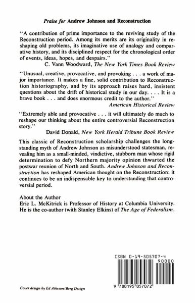 An essential work on the Civil War period, this classic of Reconstruction scholarship challenges the longstanding myth of Andrew Johnson as misunderstood statesman, revealing him as a small-minded, vindictive, and stubborn man, whose rigid determination to defy Northern majority opinion thwarted the post-war reunion of North and South.