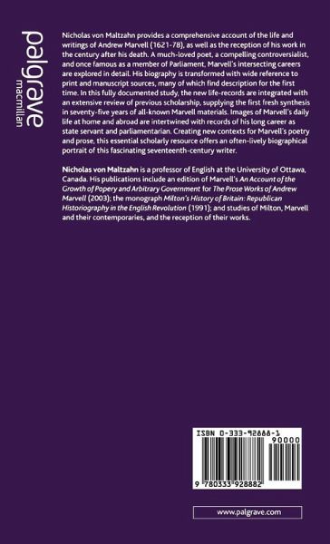 This work provides a comprehensive account of the life and writings of Andrew Marvell (1621-78), as well as the reception of his work in the century after his death. A much-loved poet, a compelling controversialist, and once famous as a member of Parliament, Marvell's intersecting careers are here explored in detail. His biography is transformed with wide reference to print and manuscript sources, many of which are described for the first time in this useful resource for any student, historian, literary scholar or general reader interested in the life and works of this great writer.