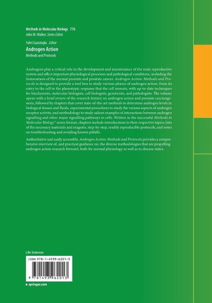 "This book details protocols to determine androgen levels, actions mediated by AR, and cross-talk with other key signaling networks. ... The techniques are most appropriate for biochemists and molecular and cellular biologists who are engaged in the study of androgen-mediated events. ... This effectively written and thought-out book will serve as useful resource to decipher the complex actions of androgens. ... The compilation of knowledge and wisdom in this book will be beneficial to current and future researchers." (Clay E. S. Comstock, Doody's Book Reviews, February, 2012)
