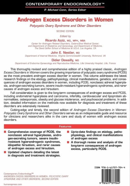 "This is a thoughtful, focused approach to androgen excess in women. The book is well organized and the format makes identification of specific topics easy. ... This book is targeted at both researchers and clinicians in the field of androgen excess and it serves that audience well. ... a good resource. It is helpful to have so many aspects of androgen excess addressed in a single source by knowledgeable authors." (Suma Dronavalli, Doody's Review Service, December, 2006)