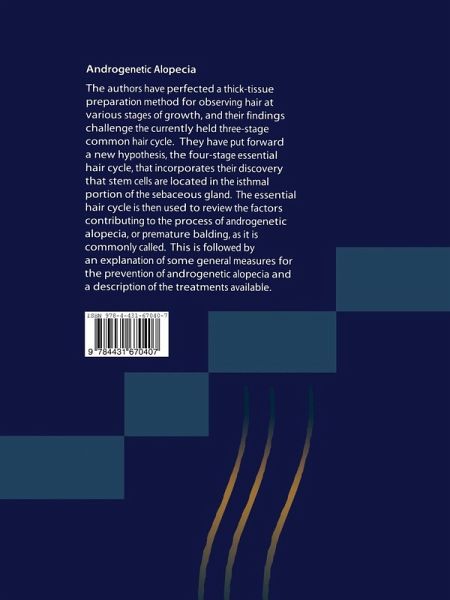 1. Structure of Skin and Hair Follicles.- 2. Preparation of Thick Tissue Specimens.- 3. Generation and Growth of Human Hair.- 4. Pigmentation of Hair.- 5. Blood Vessel System in Hair Follicles.- 6. Changes in Hair: Causative Factors.- 7. Hair Regeneration.- 8. Regeneration After Subcutaneous Tissue Shaving Procedure.- 9. Regeneration After Plucking.- 10. Regeneration After Electrical Epilation of the Hair.- 11. Regeneration of Scalp Hair.- 12. Hair Regeneration in the Mouse After Application of Anti-Cancer Agent, Particularly in Terms of Epithelial-Mesenchymal Interaction.- 13. New Concept of the Hair Cycle (Sebaceous Gland Hypothesis).- 14. Other Important Findings in the Hair Follicle.- 15. Hormones Classified According to Secretory Organ of Origin.- 16. Neuronal and Other Factors That Influence the Hair Follicle.- 17. Androgenetic Alopecia.- 18. Etiologic Factors in Male Pattern Baldness.- 19. Sebaceous Gland Hypothesis of Androgenetic Alopecia (Inaba 1985; Inaba and Inaba 1992a).- 20. Histological Findings in Androgenetic Alopecia.- 21. Causal Mechanism of Progressive Androgenetic Alopecia.- 22. Differential Diagnosis (Types of Baldness Other than Male Pattern Baldness).- 23. Relationship of Diet to Androgenetic Alopecia.- 24. General Measures for Prevention of Baldness.- 25. Therapy for Androgenetic Alopecia.- 26. Agents Used for the Treatment of Androgenetic Alopecia.- 27. Other Products Being Developed by Pharmaceutical and Cosmetic Companies.- 28. Trial Treatment of Androgenetic Alopecia with Oxidizing Agents (Inaba and Inaba 1984).- 29. Operative Treatment for Androgenetic Alopecia.- 30. Artificial Hair Implantation.- 31. Another Solution: Hairpieces (Wigs).- 32. Mechanism of Linear Scar Formation After Scalp Surgery: Preventive Measures.- Afterword.- Acknowledgments.- References.