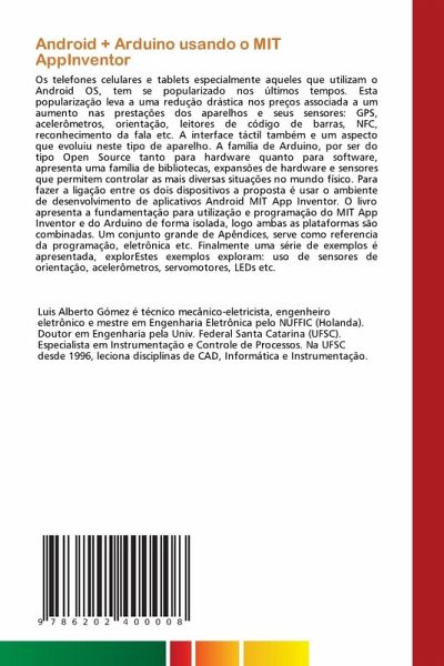 Os telefones celulares e tablets especialmente aqueles que utilizam o Android OS, tem se popularizado nos últimos tempos. Esta popularização leva a uma redução drástica nos preços associada a um aumento nas prestações dos aparelhos e seus sensores: GPS, acelerômetros, orientação, leitores de código de barras, NFC, reconhecimento da fala etc. A interface táctil também e um aspecto que evoluiu neste tipo de aparelho. A família de Arduino, por ser do tipo Open Source tanto para hardware quanto para software, apresenta uma família de bibliotecas, expansões de hardware e sensores que permitem controlar as mais diversas situações no mundo físico. Para fazer a ligação entre os dois dispositivos a proposta é usar o ambiente de desenvolvimento de aplicativos Android MIT App Inventor. O livro apresenta a fundamentação para utilização e programação do MIT App Inventor e do Arduino de forma isolada, logo ambas as plataformas são combinadas. Um conjunto grande de Apêndices, serve como referencia da programação, eletrônica etc. Finalmente uma série de exemplos é apresentada, explorEstes exemplos exploram: uso de sensores de orientação, acelerômetros, servomotores, LEDs etc.