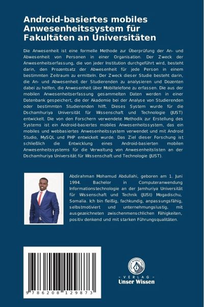 Die Anwesenheit ist eine formelle Methode zur Überprüfung der An- und Abwesenheit von Personen in einer Organisation. Der Zweck der Anwesenheitserfassung, die von jeder Institution durchgeführt wird, besteht darin, den Prozentsatz der Abwesenheit für jede Person in einem bestimmten Zeitraum zu ermitteln. Der Zweck dieser Studie besteht darin, die An- und Abwesenheit der Studierenden zu analysieren und Dozenten dabei zu helfen, die Anwesenheit über Mobiltelefone zu erfassen. Die aus der mobilen Anwesenheitserfassung gesammelten Daten werden in einer Datenbank gespeichert, die der Akademie bei der Analyse von Studierenden oder bestimmten Studierenden hilft. Dieses System wurde für die Dschamhuriya Universität für Wissenschaft und Technologie (JUST) entwickelt. Die von den Forschern verwendete Methodik zur Erstellung des Systems ist ein Android-basiertes mobiles Anwesenheitssystem, das ein mobiles und webbasiertes Anwesenheitssystem verwendet und mit Android Studio, MySQL und PHP entwickelt wurde. Das Ziel dieser Forschung ist schließlich die Entwicklung eines Android-basierten mobilen Anwesenheitssystems für die Verwaltung von Anwesenheitslisten an der Dschamhuriya Universität für Wissenschaft und Technologie (JUST).