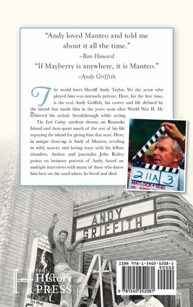 Learn about the real life of beloved actor Andy Griffith. The world loves Sheriff Andy Taylor. Yet the actor who played him was intensely private. Here, for the first time, is the real Andy Griffith, his career and life defined by the island that made him in the years soon after World War II. He achieved his artistic breakthrough while acting in The Lost Colony drama on Roanoke Island, then spent the rest of his life repaying the island for giving him that start. Here, in unique closeup, is Andy of Manteo, reveling in wild, watery and loving ways with his fellow islanders. Author and journalist John Railey paints an intimate portrait of Andy, based on interviews with many of those who knew him best on the sand where he lived and died.