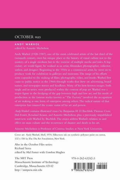 A critical primer on the work of Andy Warhol. Andy Warhol (1928-1987), one of the most celebrated artists of the last third of the twentieth century, owes his unique place in the history of visual culture not to the mastery of a single medium but to the exercise of multiple media and roles. A legendary art world figure, he worked as an artist, filmmaker, photographer, collector, author, and designer. Beginning in the 1950s as a commercial artist, he went on to produce work for exhibition in galleries and museums. The range of his efforts soon expanded to the making of films, photography, video, and books. Warhol first came to public notice in the 1960s through works that drew on advertising, brand names, and newspaper stories and headlines. Many of his best-known images, both single and in series, were produced within the context of pop art. Warhol was a major figure in the bridging of the gap between high and low art, and his mode of production in the famous studio known as "The Factory" involved the recognition of art making as one form of enterprise among others. The radical nature of that enterprise has ensured the iconic status of his art and person. Andy Warhol contains illustrated essays by Benjamin H. D. Buchloh, Thomas Crow, Hal Foster, Rosalind Krauss, Annette Michelson, and Nan Rosenthal, plus a previously unpublished interview with Warhol by Buchloh. The essays address Warhol's relation to and effect on mass culture and the recurrence of disaster and death in his art.
