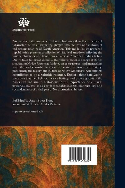 "Anecdotes of the American Indians: Illustrating their Eccentricities of Character" offers a fascinating glimpse into the lives and customs of indigenous peoples of North America. This meticulously prepared republication preserves a collection of historical anecdotes reflecting the unique character and traditions of various American Indian tribes. Drawn from historical accounts, this volume presents a range of stories showcasing Native American folklore, social structures, and interactions with the wider world. Readers interested in American history, particularly the history and culture of Native Americans, will find this compilation to be a valuable resource. Explore these captivating narratives that shed light on the rich heritage and enduring spirit of the American Indians. A testament to the importance of cultural preservation, this book provides insights into the anthropology and social dynamics of a vital part of North American history. This work has been selected by scholars as being culturally important, and is part of the knowledge base of civilization as we know it. This work is in the public domain in the United States of America, and possibly other nations. Within the United States, you may freely copy and distribute this work, as no entity (individual or corporate) has a copyright on the body of the work. Scholars believe, and we concur, that this work is important enough to be preserved, reproduced, and made generally available to the public. We appreciate your support of the preservation process, and thank you for being an important part of keeping this knowledge alive and relevant.