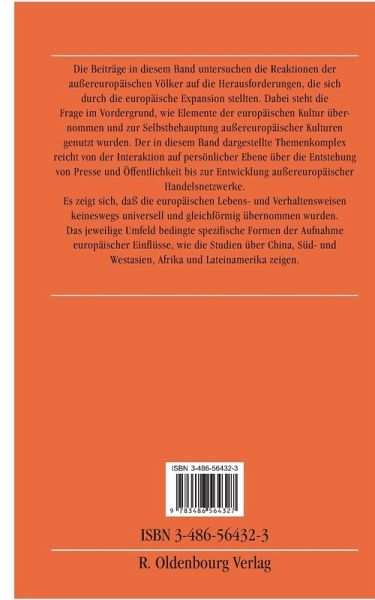 Die Beiträge in diesem Band untersuchen die Reaktionen der außereuropäischen Völker auf die Herausforderungen, die sich durch die europäische Expansion stellten. Dabei steht die Frage im Vordergrund, welche Aspekte der europäischen Kultur übernommen wurden und in welchen Bereichen sich die außereuropäischen Kulturen behaupteten. Der in diesem Band dargestellte Themenkomplex reicht von der Interaktion auf persönlicher Ebene über die Entstehung von Presse und Öffentlichkeit bis zu der Entstehung und dem Wandel außereuropäischer Handelsnetzwerke. Es zeigt sich, daß die europäischen Lebens- und Verhaltensweisen keineswegs universell und gleichförmig übernommen wurden, sondern daß es weiterhin starke, durch das jeweilige Umfeld bestimmte Unterschiede gibt.