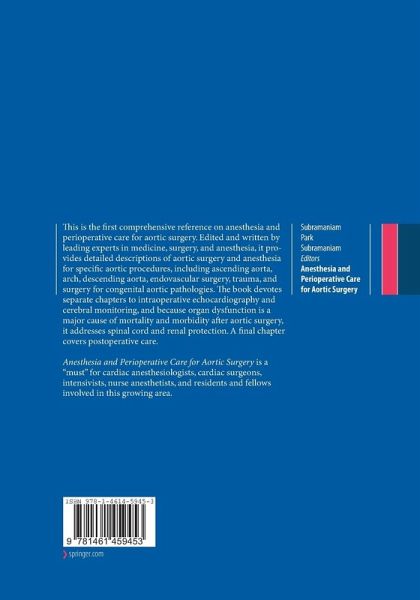 "Anesthesia and Perioperative Care for Aortic Surgery ... is a multi-authored American book providing an in-depth review of anaesthesia for surgery of the entire aorta. ... The individual chapters are generally well written and laid out with a good selection of relevant images and a balanced discussion of the evidence base for clinical practice. ... In summary, this is a well written, comprehensive book which will ... certainly be of value to those practicing vascular or cardiothoracic anaesthesia." (G. Woodward and S. Howell, British Journal of Anaesthesia, Vol. 111 (4), October, 2013)