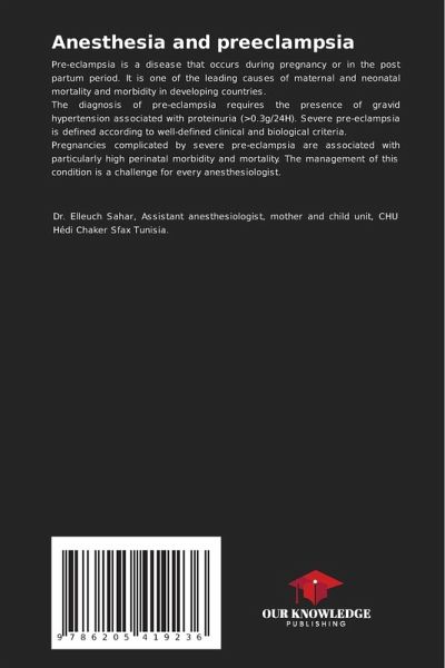 Pre-eclampsia is a disease that occurs during pregnancy or in the post partum period. It is one of the leading causes of maternal and neonatal mortality and morbidity in developing countries.The diagnosis of pre-eclampsia requires the presence of gravid hypertension associated with proteinuria (>0.3g/24H). Severe pre-eclampsia is defined according to well-defined clinical and biological criteria.Pregnancies complicated by severe pre-eclampsia are associated with particularly high perinatal morbidity and mortality. The management of this condition is a challenge for every anesthesiologist.