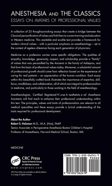 A collection of 25 thought provoking Essays which create a bridge between the Classical personification of values and link them to training and education in Western Medicine. This readable and erudite text provides a framework for modern clinical values - with a particular emphasis on anesthesiology.