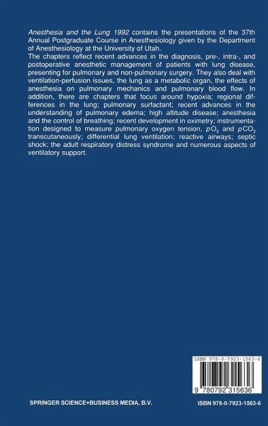 Anesthesia and the Lung 1992 presents recent advances in the diagnosis, pre-, intra-, and postoperative anesthetic management of patients with lung disease, presenting for pulmonary and non-pulmonary surgery. It also deals with ventilation-perfusion issues, the lung as a metabolic organ, the effects of anesthesia on pulmonary mechanics and pulmonary blood flow. In addition, there are chapters that focus on hypoxia; regional differences in the lung; pulmonary surfactant; recent advances in the understanding of pulmonary edema; high altitude disease; anesthesia and the control of breathing; recent development in oximetry; instrumentation designed to measure pulmonary oxygen tension, pO2 and pCO2 transcutaneously; differential lung ventilation; reactive airways; septic shock; the adult respiratory distress syndrome and numerous aspects of ventilatory support.