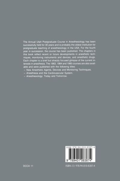 Theodore H. Stanley, M.D. W. Clayton Petty, M.D. Anesthesiology 1986 contains the Refresher Course manuscripts of the presentations of the 31st Annual Postgraduate Course in Anesthesiology which took place at the Westin Hotel Utah Convention Center in Salt Lake City, Utah, February 14-18, 1986. The chapters reflect recent and future developments in anesthetic techniques, monitoring instruments and devices, and anesthetic drugs. The purposes of the textbook are to 1) act as a reference for the anesthesiologists attending the meeting, and 2) serve as a vehi cl e to bri ng many of the 1 atest…mehr