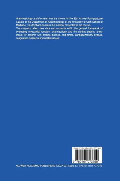 Theodore H. Stanley, M. D. Anesthesiology and the Heart contains the Refresher Course manuscripts of the presentations of the 35th Annual Postgraduate Course in Anesthesiology which took place at The Cliff Conference Center in Snowbird, Utah, February 16-20, 1990. The chapters reflect new data and concepts within the general framework of "evaluating myocardial function," "pharmacology and the cardiac patient," "anesthesia for patients with cardiac disease," and "stress, cardiopulmonary bypass, coagulation problems and related issues. " The purposes of the textbook are to 1) act as a reference…mehr