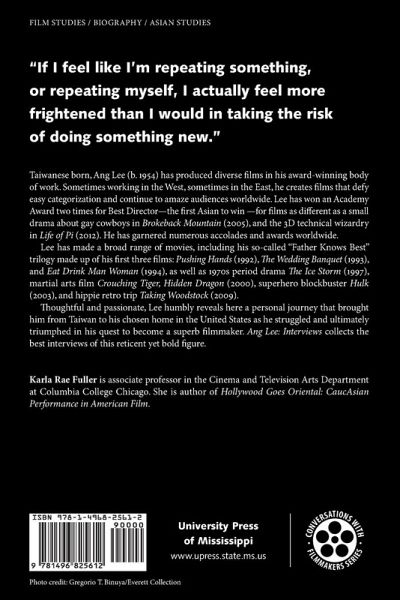 Taiwanese born, Ang Lee (b. 1954) has produced diverse films in his award-winning body of work. Sometimes working in the West, sometimes in the East, he creates films that defy easy categorization and continue to amaze audiences worldwide. Lee has won an Academy Award two times for Best Director--the first Asian to win--for films as different as a small drama about gay cowboys in Brokeback Mountain (2005), and the 3D technical wizardry in Life of Pi (2012). He has garnered numerous accolades and awards worldwide. Lee has made a broad range of movies, including his so-called "Father Knows Best" trilogy made up of his first three films: Pushing Hands (1992), The Wedding Banquet (1993), and Eat Drink Man Woman (1994), as well as 1970s period drama The Ice Storm (1997), martial arts film Crouching Tiger, Hidden Dragon (2000), superhero blockbuster Hulk (2003), and hippie retro trip Taking Woodstock (2009). Thoughtful and passionate, Lee humbly reveals here a personal journey that brought him from Taiwan to his chosen home in the United States as he struggled and ultimately triumphed in his quest to become a superb filmmaker. Ang Lee: Interviews collects the best interviews of this reticent yet bold figure.