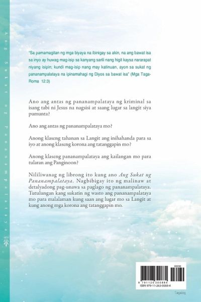 Hinahangad kong kayong lahat sana’y magkamit ng buong sukat ng espiritu at tamasahin ninyo ang panlangit at walang-hanggang kaluwalhatian sa Bagong Jerusalem kung saan naroroon ang trono ng Diyos! Kasama ang Ang Mensahe ng Krus, ang Ang Sukat ng Pananampalataya ang pinakapundamental at pinakamahalagang gabay na aklat sa epektibong pamumuhay bilang isang Cristiano. Ibinibigay ko ang lahat ng pasasalamat at papuri sa Diyos Ama na nagkaloob ng biyayang mailathala ang mahalagang aklat na ito at maipahayag ang tungkol sa espiritwal na rehiyon sa di-mabilang na mga tao. Sa panahong ito, napakaraming tao ang nagsasabing sila ay naniniwala, ngunit wala silang katiyakan tungkol sa kanilang kaligtasan. Wala silang alam tungkol sa pagsukat ng pananampalataya at kung gaano kalaking pananampalataya ang kailangan nila para maligtas. Sinasabi nila sa isa’t isa, "Malaki ang pananampalataya ng taong ito" o "Ang taong iyon ay maliit ang pananampalataya." Ngunit hindi madaling malaman kung gaanong kalaking pananampalataya mo ang tinatanggap ng Diyos. Hindi rin madaling sukatin kung gaano kalaki ang pananampalataya mo o kung gaano na ang inilaki nito. Nais ng Diyos na magkaroon tayo hindi ng pananampalatayang makalaman, kundi pananampalatayang espiritwal na may mga kasamang gawa. Masasabi na ang pananampalataya ng isang tao ay makalaman kung nakikinig lamang sila at nag-aaral ng Salita ng Diyos, at ikinakabisa at iniipon ito bilang kaalaman lamang. Hindi tayo magkakaroon ng pananampalatayang espiritwal sa sarili nating pagsisikap. Ito ay ipinagkakaloob lamang sa atin ng Diyos. Kaya naman, sinasabihan tayo sa Roma 12:3, "Dahil sa biyayang tinanggap ko, sinasabi ko sa inyo: Huwag ninyong pahalagahan ang inyong sarili nang higit sa nararapat. Sa halip, tingnan ninyong mabuti ang inyong sarili ayon sa sukat ng pananampalatayang ipinagkaloob sa inyo ng Diyos" (Ang Salita ng Diyos para sa Pilipino). Sinasabi sa atin ng talatang ito na ang bawat isa ay may sariling pananampalatayang espiritwal na ipinagkaloob ng Diyos, at ang mga sagot at pagpapala Niya sa mga tao ay iba-iba ayon sa sukat ng pananampalataya nila. Inilalarawan sa 1 Juan 2:12 at sa kasunod na mga talata na ang paglago ng pananampalataya ng bawat tao ay nag-uumpisa bilang pananampalataya ng mga sanggol o ng mga batang pahakbang-hakbang pa lamang lumakad, hanggang umunlad sa pananampalataya ng mga maliliit na bata, hanggang lumago sa pananampalataya ng mga kabataan tungo sa pananampalataya ng mga ama. Mababasa sa 1 Corinto 15:41, "Iba ang ningning ng araw sa ningning ng buwan, at iba naman ang ningning ng mga bituin. At kahit ang mga bituin ay may iba’t ibang ningning" (Ang Salita ng Dios). Pinaaalalahan tayo ng talatang ito na iba-iba ang magiging tahanan ng mga tao sa Langit at ang kanilang kaningningan doon ayon sa sukat ng kanilang pananampalataya. Mahalaga siyempreng magtamo tayo ng kaligtasan at makarating sa Langit, ngunit ang malaman kung anong magiging tirahan natin sa Langit, at anong uri ng korona at mga gantimpala ang tatanggapin natin ay higit na mahalaga. Ninanais ng Diyos ng pag-ibig na marating ng mga anak Niya ang ganap na sukat ng pananampalataya, at gustong-gusto Niyang makapasok sila sa Bagong Jerusalem kung saan naroon ang trono ng Diyos. Pinananabikan Niyang makasama sila roon nang magpawalang-hanggan.