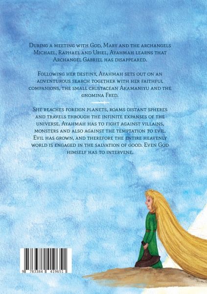 During a meeting with God, Mary and the archangels Michael, Raphael and Uriel, Ayahmah learns that Archangel Gabriel has disappeared.Following her destiny, Ayahmah sets out on an adventurous search together with her faithful companions, the small crustacean Akamaniyu and the gnomina Fred.She reaches foreign planets, roams distant spheres and travels through the infinite expanses of the universe. Ayahmah has to fight against villains, monsters and also against the temptation to evil.Evil has grown, and therefore the entire heavenly world is engaged in the salvation of good. Even God himself has to intervene.…mehr