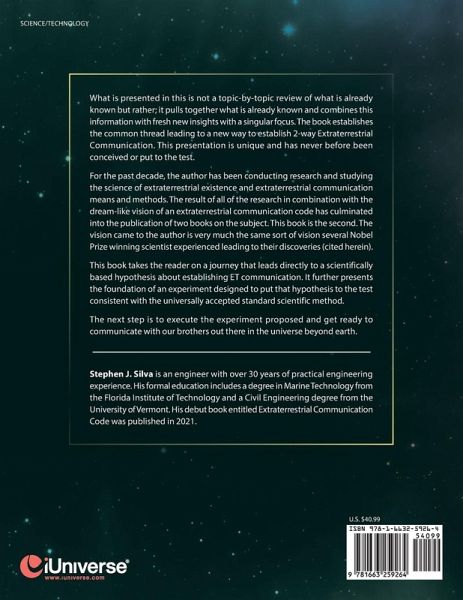 What is presented in this is not a topic-by-topic review of what is already known but rather; it pulls together what is already known and combines this information with fresh new insights with a singular focus. The book establishes the common thread leading to a new way to establish 2-way Extraterrestrial Communication. This presentation is unique and has never before been conceived or put to the test. For the past decade, the author has been conducting research and studying the science of extraterrestrial existence and extraterrestrial communication means and methods. The result of all of the research in combination with the dream-like vision of an extraterrestrial communication code has culminated into the publication of two books on the subject. This book is the second. The vision came to the author is very much the same sort of vision several Nobel Prize winning scientist experienced leading to their discoveries (cited herein). This book takes the reader on a journey that leads directly to a scientifically based hypothesis about establishing ET communication. It further presents the foundation of an experiment designed to put that hypothesis to the test consistent with the universally accepted standard scientific method. The next step is to execute the experiment proposed and get ready to communicate with our brothers out there in the universe beyond earth.