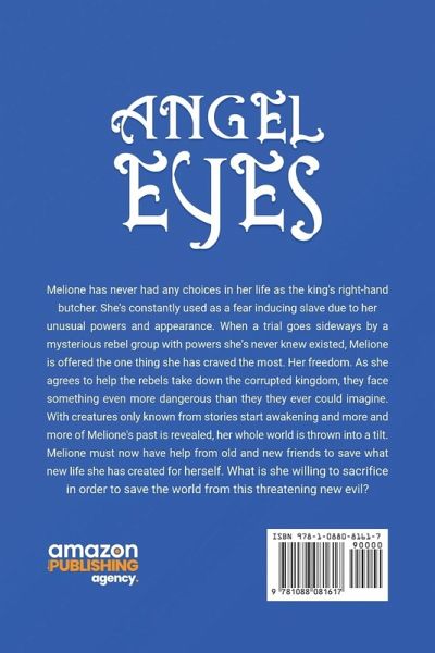 Melione has never had any choices in her life as the king's right-hand butcher. She's constantly used as a fear inducing slave due to her unusual powers and appearance. When a trial goes sideways by a mysterious rebel group with powers she's never knew existed, Melione is offered the one thing she has craved the most. Her freedom. As she agrees to help the rebels take down the corrupted kingdom, they face something even more dangerous than they they ever could imagine. With creatures only known from stories start awakening and more and more of Melione's past is revealed, her whole world is thrown into a tilt. Melione must now have help from old and new friends to save what new life she has created for herself. What is she willing to sacrifice in order to save the world from this threatening new evil?