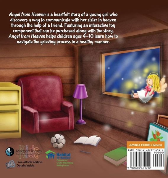 Angel from Heaven is a heartfelt story of a young girl who discovers a way to communicate with her sister in heaven through the help of a friend. Featuring an interactive toy component that can be purchased along with the story, Angel from Heaven helps children ages 4-10 learn how to navigate the grieving process in a healthy manner.