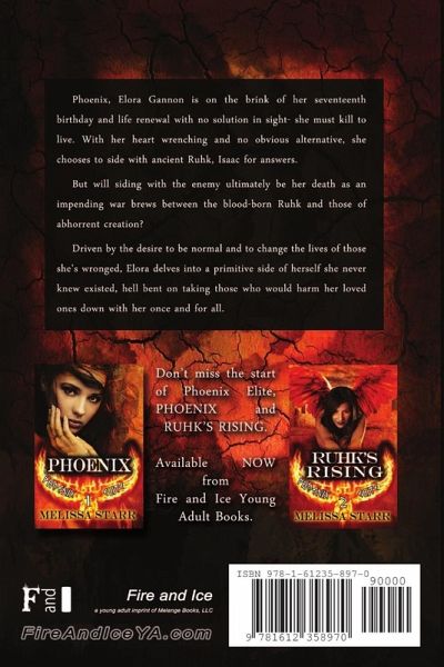 Phoenix, Elora Gannon is on the brink of her seventeenth birthday and life renewal with no solution in sight- she must kill to live. With her heart wrenching and no obvious alternative, she chooses to side with ancient Ruhk, Isaac for answers. But will siding with the enemy ultimately be her death as an impending war brews between the blood-born Ruhk and those of abhorrent creation? Driven by the desire to be normal and to change the lives of those she's wronged, Elora delves into a primitive side of herself she never knew existed, hell bent on taking those who would harm her loved ones down with her once and for all.